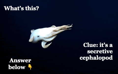 It's a rare "Dumbo" octopus, which lives at depths of up to 7,000 metres and is known for its ear-like fins, rather like those belonging to the 1940s Disney cartoon character. The unusual mollusc was spotted in a broadcast on the EVNautilus live stream, which is being beamed from a remotely operated submarine exploring the Papahānaumokuākea Marine National Monument in the Pacific Ocean. |
